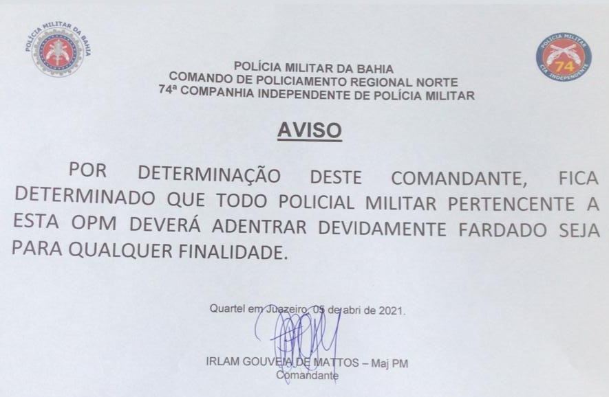 ABSURDO: Comandante da 74ª CIPM desativa alojamento de praças e proíbe policiais militares de entrarem sem farda na unidade.