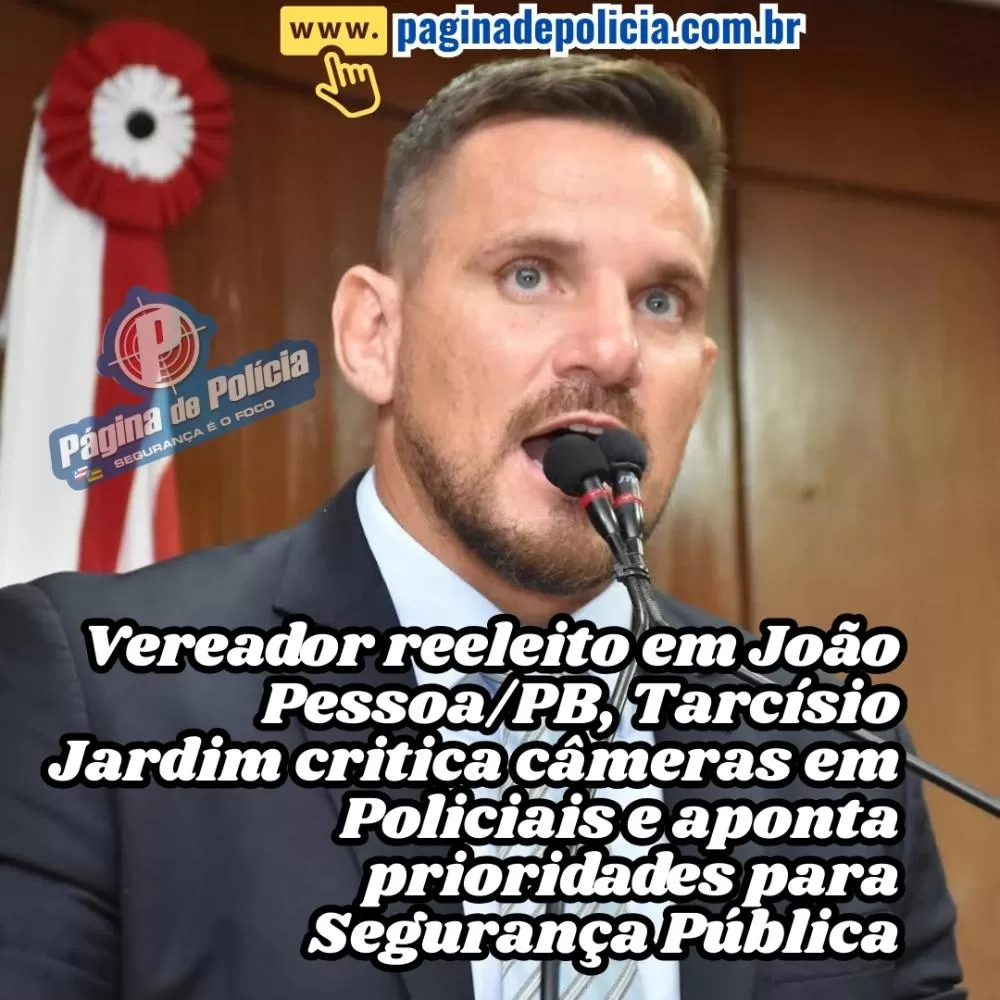 Vereador reeleito em João Pessoa, Tarcísio Jardim critica câmeras em policiais e aponta prioridades para Segurança Pública