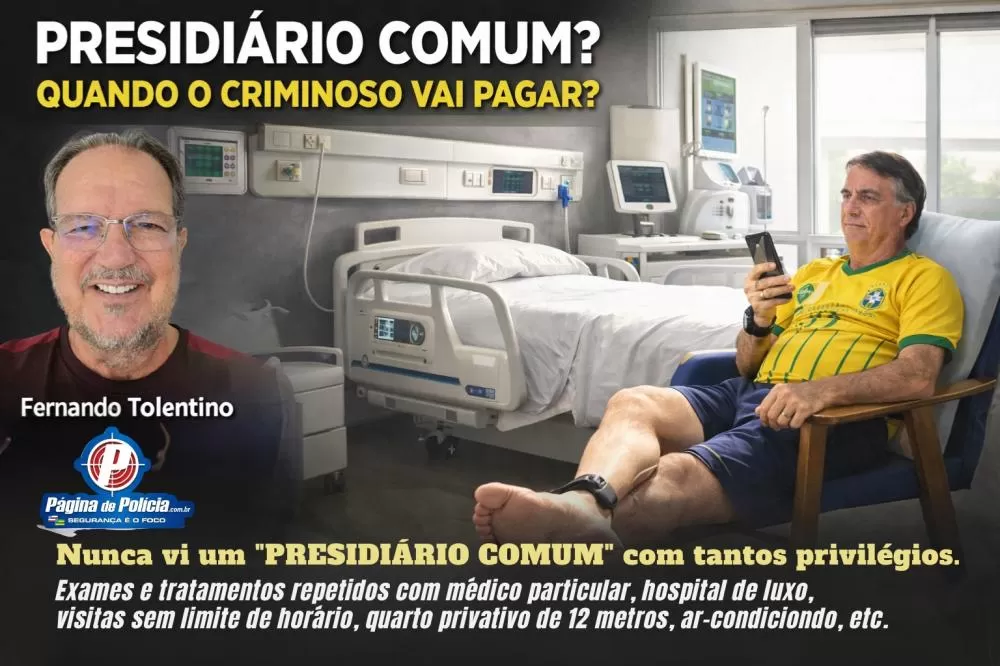 Nunca vi um “presidiário comum” com tantos privilégios. Exames e tratamentos repetidos com médico particular, hospital de luxo, visitas sem limite de horário, quarto privativo de 12 metros, ar-condicionado e outros benefícios. por Fernando Tolentino de Souza Vieira