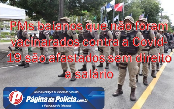 Policiais militares baianos que não se vacinaram contra a Covid-19 são afastados sem direito a salário