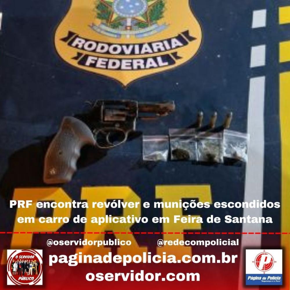 PRF encontra revólver e munições escondidos em carro de aplicativo em Feira de Santana