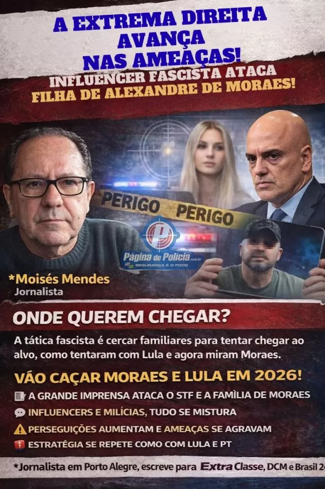 Um influencer fascista pregou essa semana nas redes sociais que é preciso agir logo e pegar a filha de Alexandre de Moraes. Esse sujeito só é diferente dos jornalões por ser mais autêntico, sincero e explícito. por MOISÉS MENDES