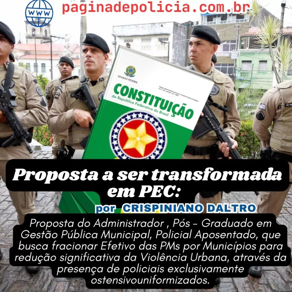 Proposta do Administrador Público, Pós - Graduado em Gestão Pública Municipal, Policial Aposentado, que busca fracionar Efetivo das PMs por Municípios para redução significativa da Violência Urbana, através da presença de policiais exclusivamente ostensivo uniformizados.