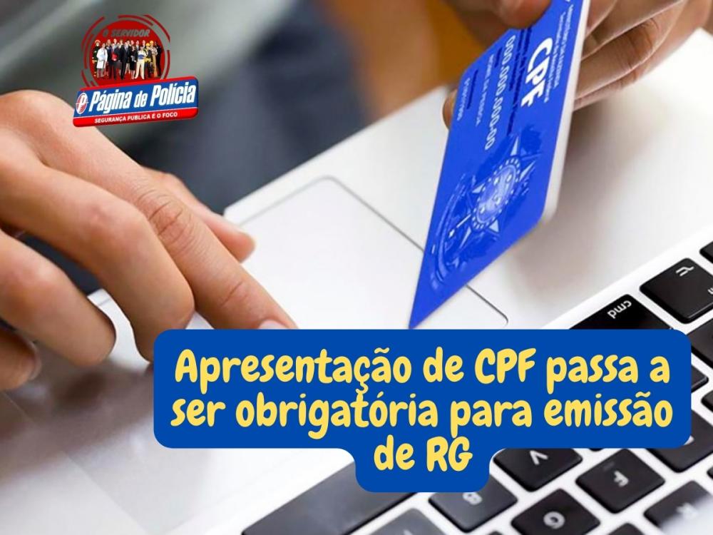 Obrigatória a apresentação de documento com o número do CPF (Cadastro de Pessoa Física) para a emissão da Carteira de Identidade, que podem ser apresentados em suas versões física ou digital.