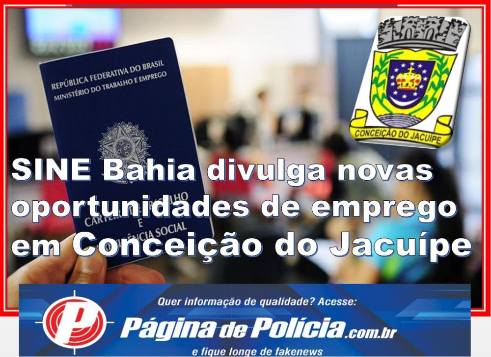 CONCEIÇÃO DO JACUÍPE: SINE Bahia divulga novas oportunidades de emprego