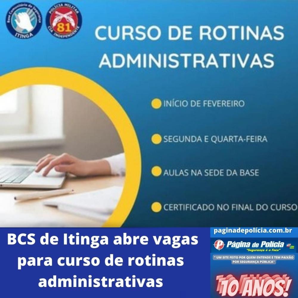BCS de Itinga abre vagas para curso de rotinas administrativas