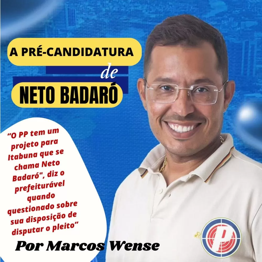 "O PP tem um projeto para Itabuna que se chama Neto Badaró", diz o prefeiturável quando questionado sobre sua disposição de disputar o pleito, se ela vai até o fim do processo sucessório.