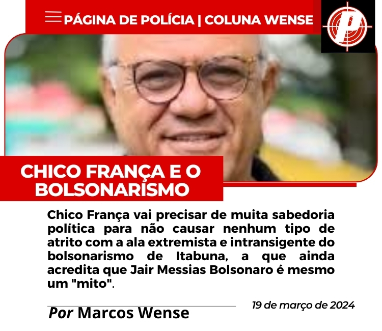 Chico França vai precisar de muita sabedoria política para não causar nenhum tipo de atrito com a ala extremista e intransigente do bolsonarismo de Itabuna, a que ainda acredita que Jair Messias Bolsonaro é mesmo um "mito".