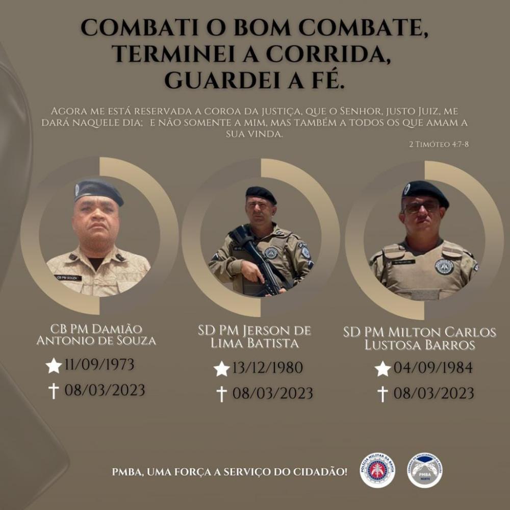 Nota oficial da PMBA lamenta o falecimento dos PMs Damião Souza, Milton Barros e Jerson Batista