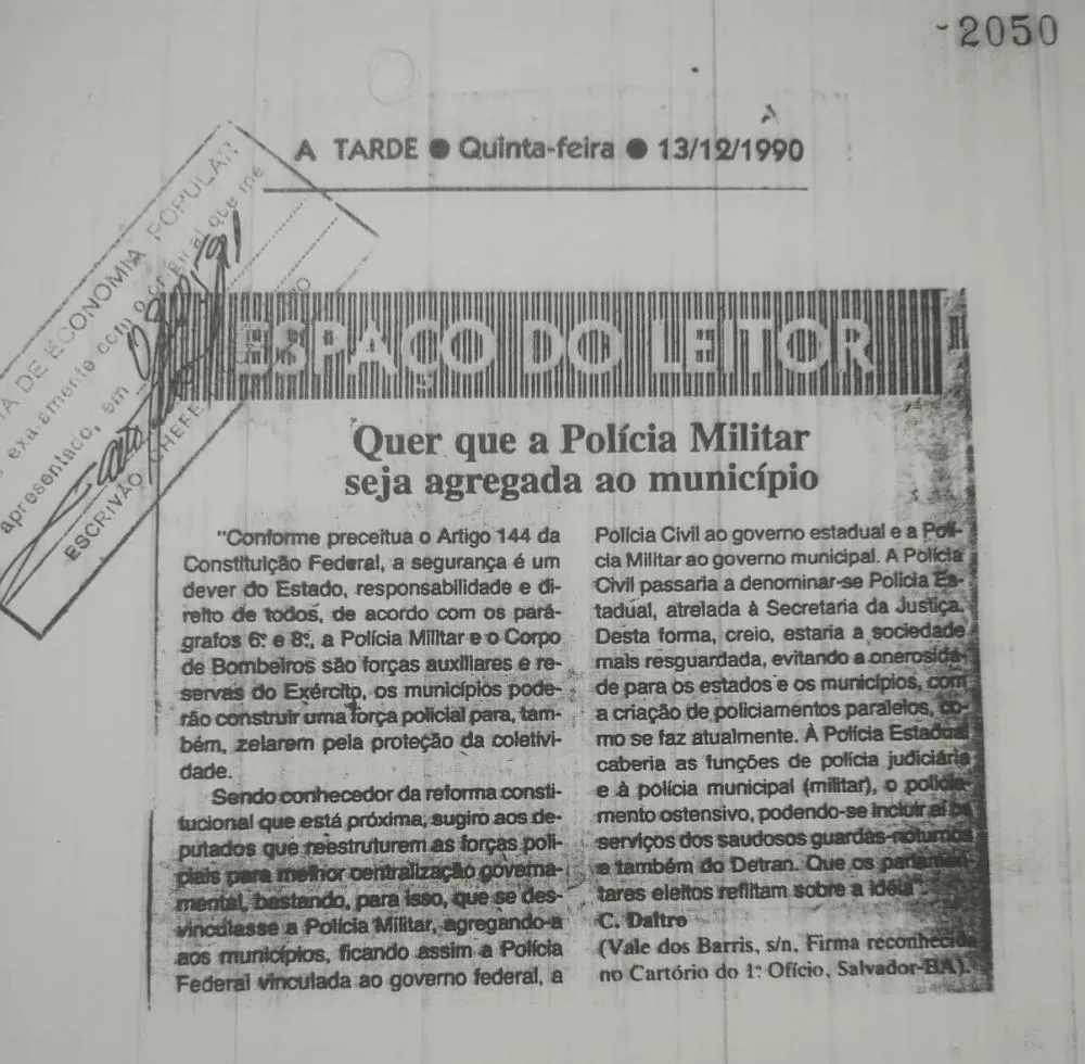 Estas são as palavras que expressei nas décadas de 80 e 90, quando publiquei pela primeira vez esta proposta no jornal A Tarde.
