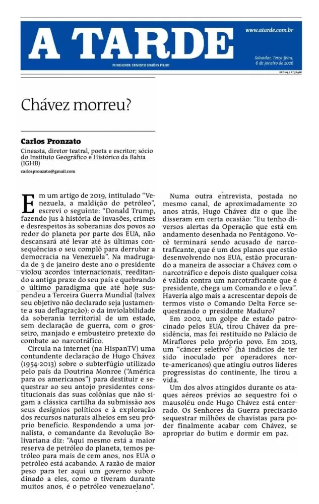 Publicado no Jornal A Tarde, edição de 06.01.2026.