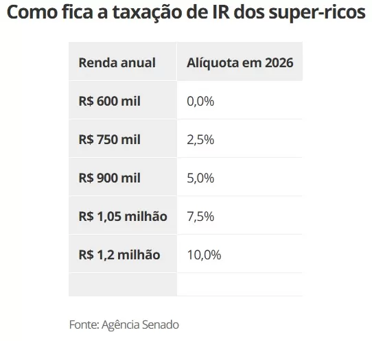 Como fica a taxação de IR dos super-ricos em 2026