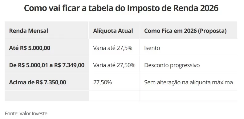 A proposta de reforma do Imposto de Renda prevista para entrar em vigor em 2026 altera de forma significativa a tributação sobre salários e rendimentos no Brasil. O principal destaque é a ampliação da faixa de isenção mensal para quem recebe até R$ 5 mil, beneficiando diretamente milhões de trabalhadores.