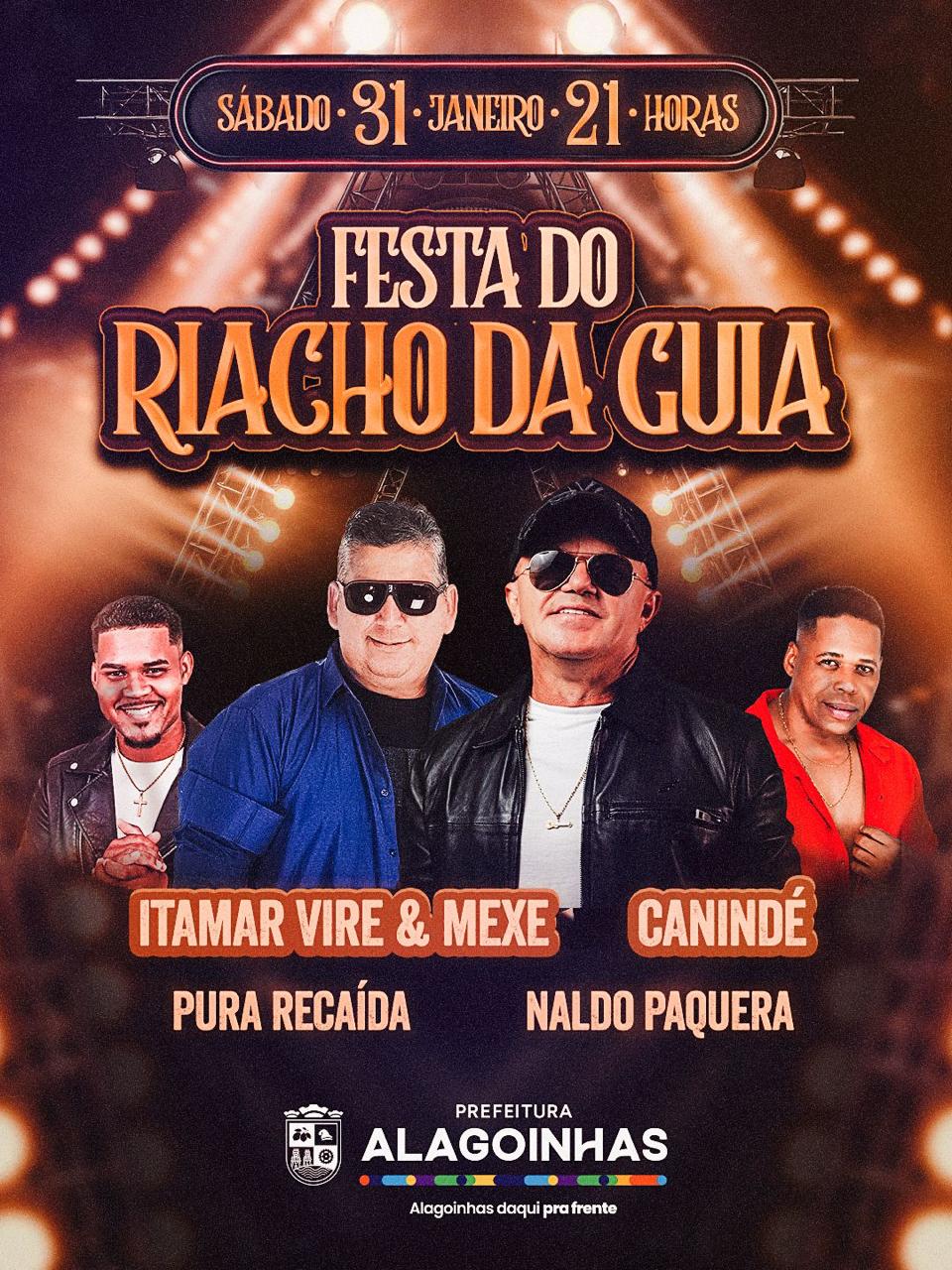 Com o objetivo de promover o lazer e valorizar as tradições locais, a Prefeitura de Alagoinhas, por meio da Secretaria de Cultura, Esporte e Turismo (SECET), apóia a realização da festa profana no distrito de Riacho da Guia. O evento acontece no dia 31 de janeiro, a partir das 21h.