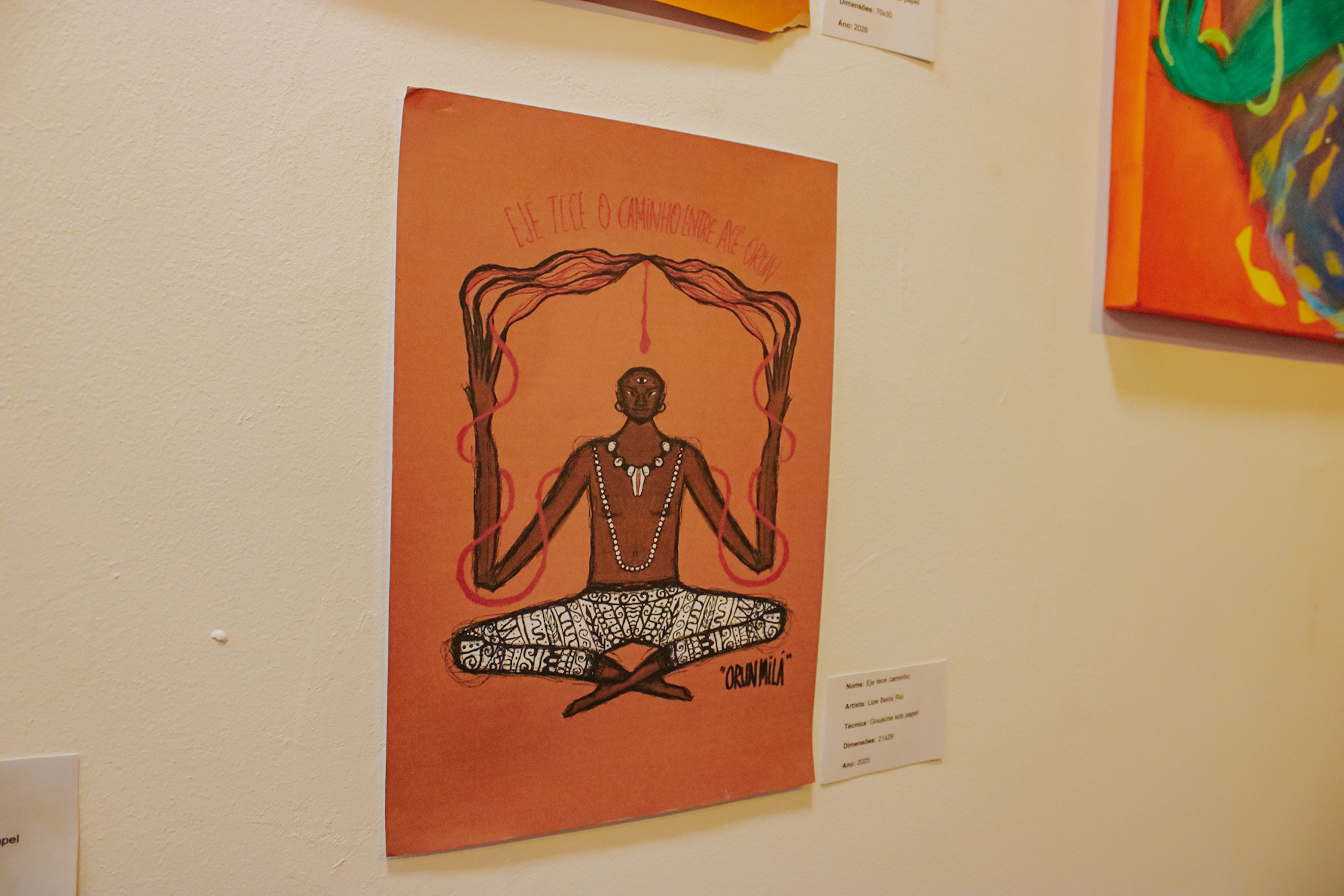 O artista Lipe Beira Rios detalhou a exibição artística. “A proposta é trazer um acolhimento para pessoas de terreiro aqui nesse ambiente e trabalhar com a semiótica das cores de terreiro, com elementos que remetem aos nossos orixás. Fico muito feliz pela abertura da Galeria com a minha proposta e com tudo que eu pude trazer. Apesar de ter um processo criativo um pouco complexo, é incrível poder ver tudo pronto”, afirmou.