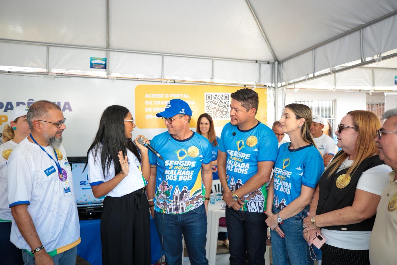 O município de Malhada dos Bois, no agreste sergipano, recebeu, nesta sexta-feira, 6, a 67ª edição do programa ‘Sergipe é aqui’, iniciativa do Governo de Sergipe que aproxima a administração estadual da população por meio da oferta de serviços públicos essenciais. A ação foi realizada no entorno da Escola Municipal Romeu de Aguiar Figueiredo e contou com a presença do governador Fábio Mitidieri, autoridades estaduais e municipais, além de moradores da região.