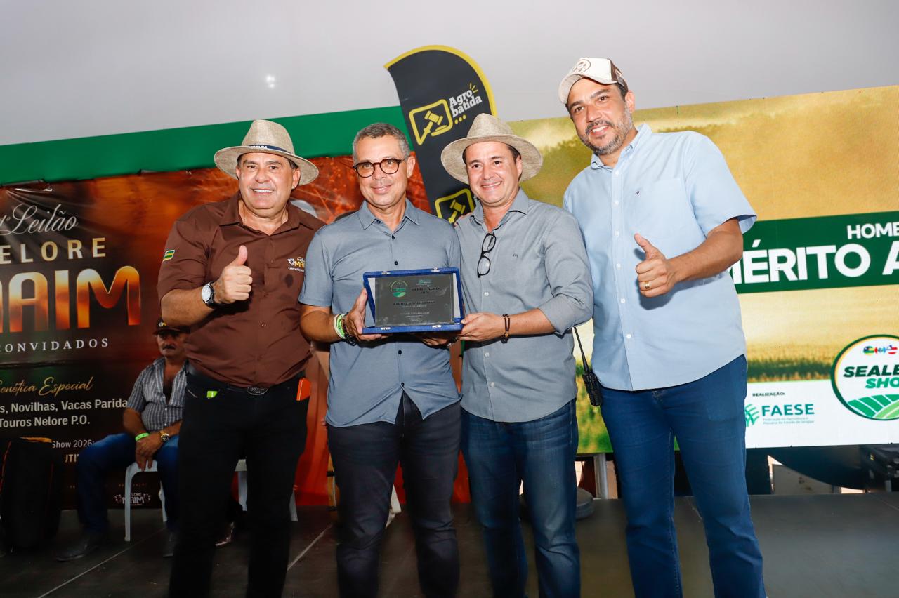 Durante a programação da feira, a Federação da Agricultura e Pecuária do Estado de Sergipe (Faese) realizou a Homenagem Mérito Agro, reconhecendo personalidades que contribuem para o fortalecimento do agronegócio. O governador Fábio Mitidieri foi um dos homenageados pelo apoio institucional ao setor.