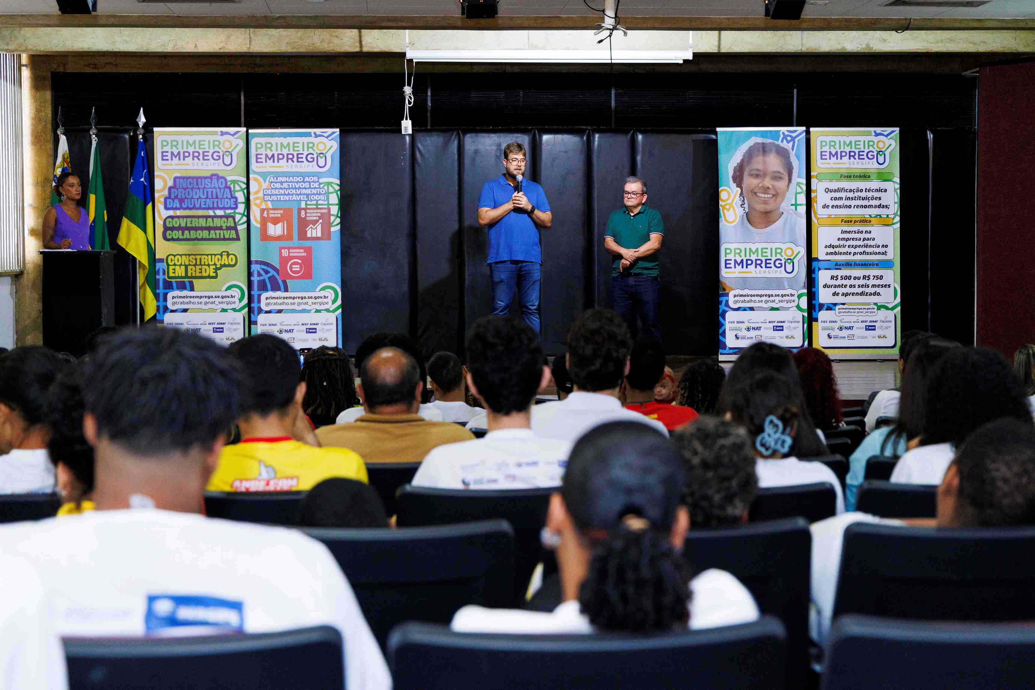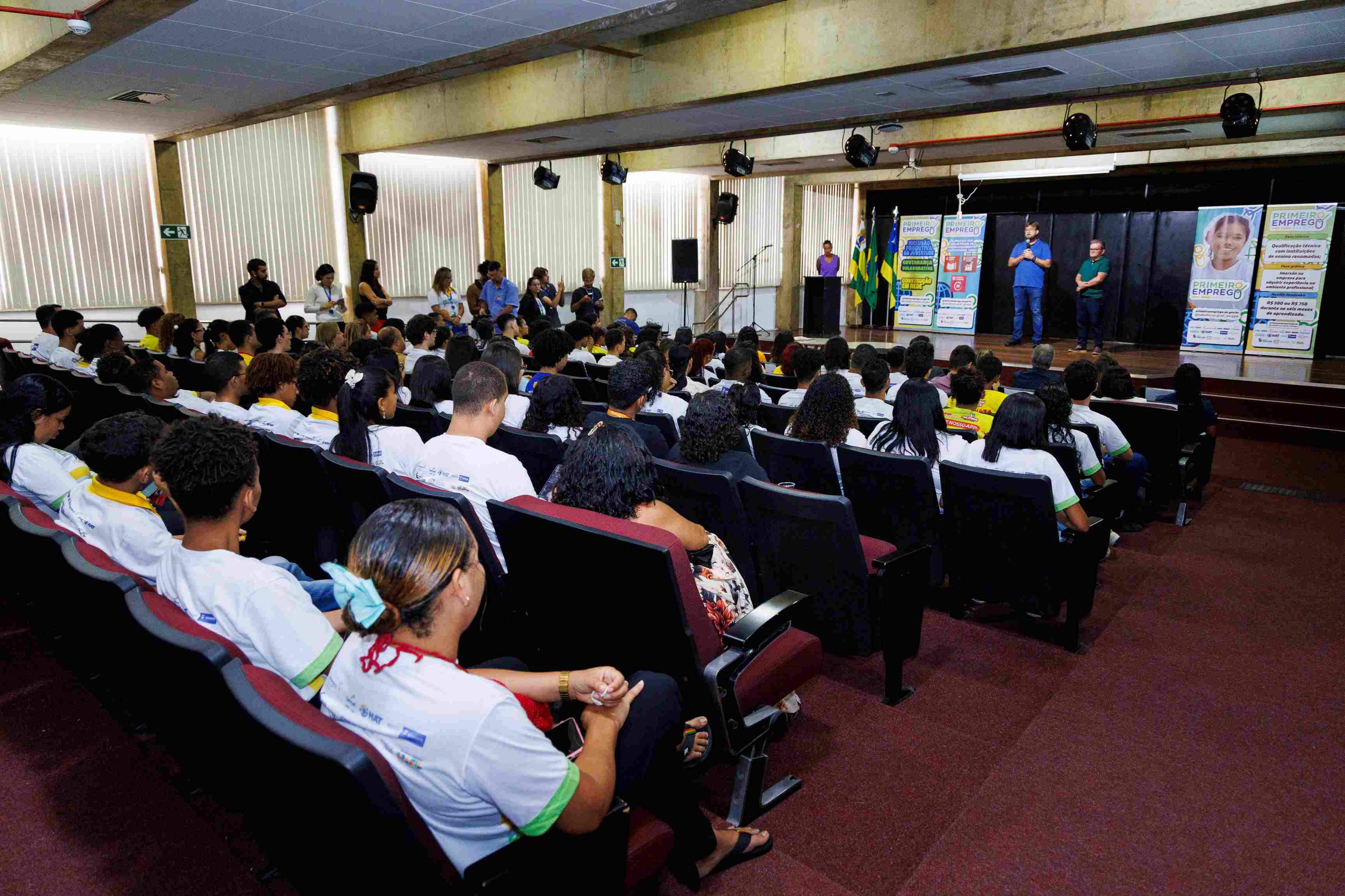Voltado para jovens que nunca tiveram vínculo formal de trabalho, o Programa Primeiro Emprego oferece qualificação técnica e experiência prática em empresas parceiras, aproximando os participantes do mercado e fortalecendo o setor produtivo do estado. Durante seis meses, os jovens passam por uma etapa teórica de capacitação e outra prática dentro das empresas, recebendo uma bolsa que varia de R$ 500 a R$ 750 para auxiliar nas despesas durante o período.