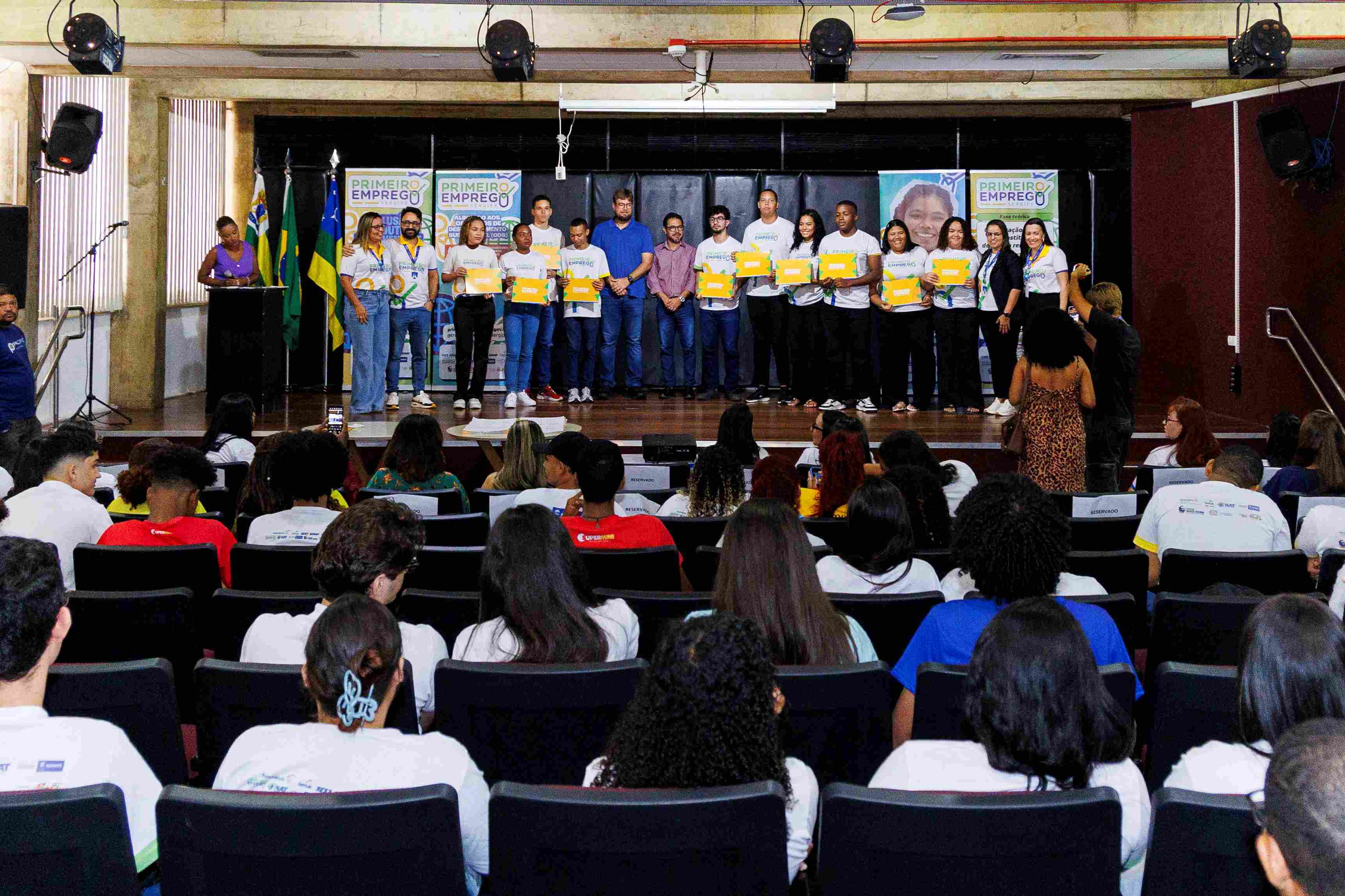 Inclusão produtiva da juventude, entusiasmo e novas perspectivas para o futuro marcaram a cerimônia oficial de entrega de certificados do Programa Primeiro Emprego (PPE), que aconteceu nesta sexta-feira, 27, na Biblioteca Pública Estadual Epiphanio Dória, em Aracaju. Promovido pelo Governo de Sergipe, por meio da Secretaria de Estado do Trabalho, Emprego e Empreendedorismo (Seteem), o evento reuniu jovens formandos e representantes de empresas parceiras da capital e da Barra dos Coqueiros, cidade da Grande Aracaju. Mais do que uma formalidade, a entrega simboliza o ingresso real de novos talentos no mercado, fruto de uma articulação direta entre a qualificação profissional e a demanda do setor privado.