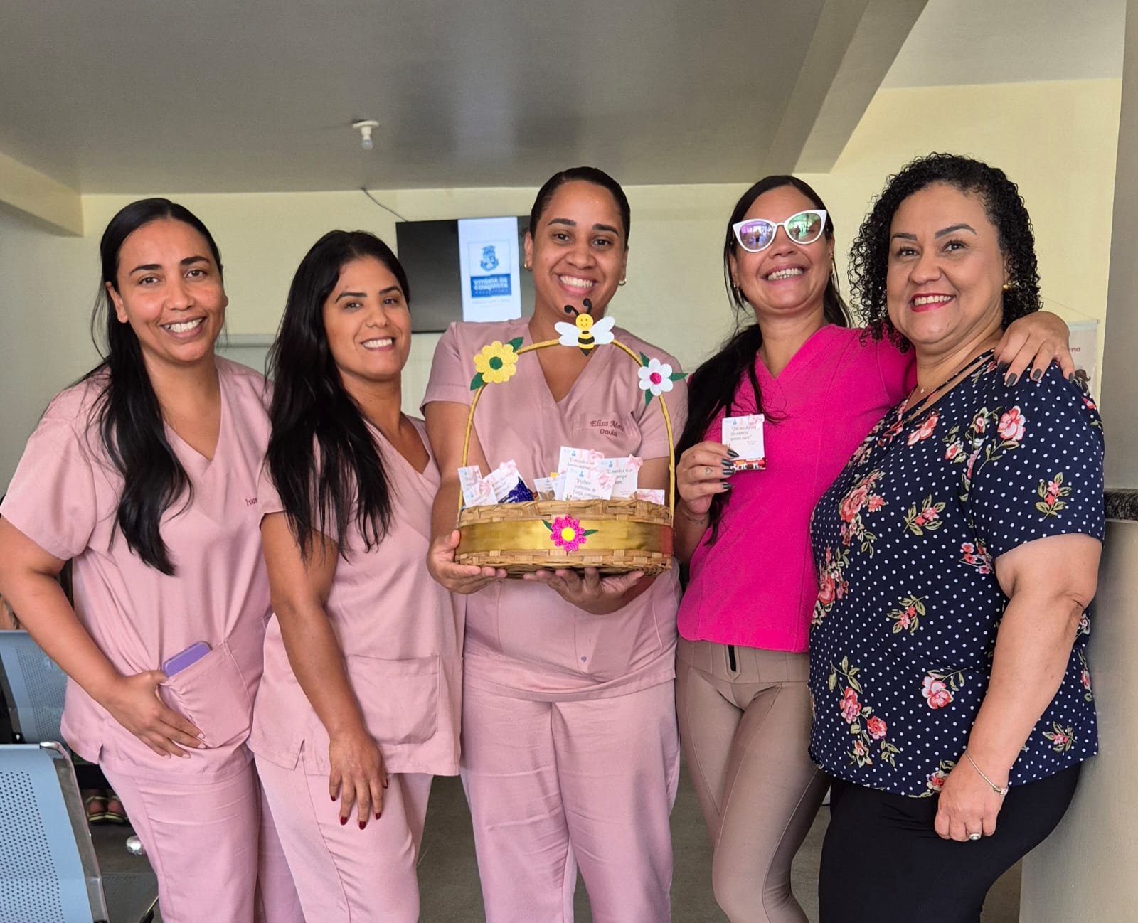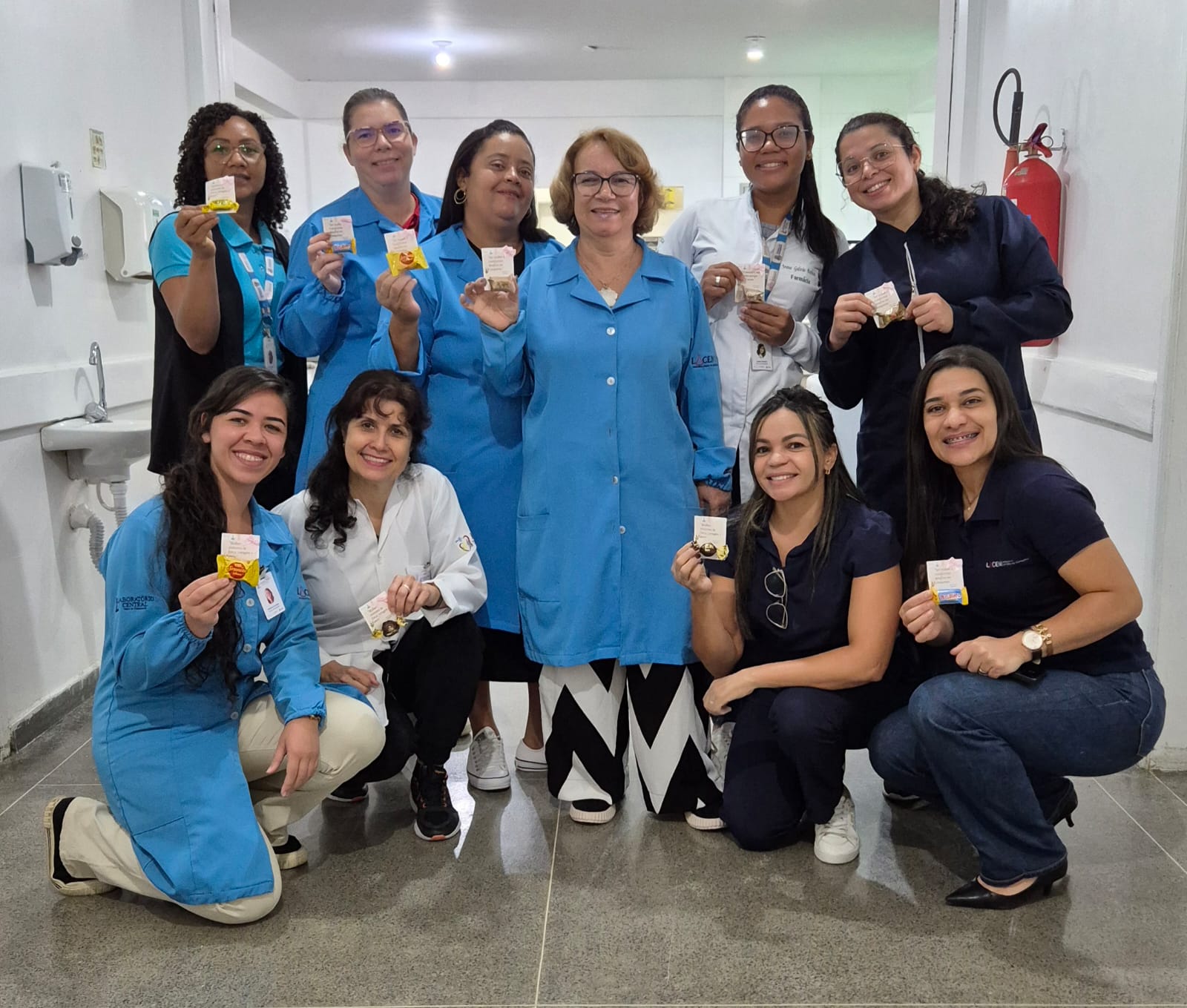 Durante as visitas foram distribuídos mimos, como chocolates, além de palavras de encorajamento às colaboradoras do Hospital Municipal Esaú Matos, do Banco de Leite Humano, do Laboratório Central e de outros setores. Foi um momento de homenagem e carinho às servidoras que tanto contribuem para que a instituição ofereça um serviço de qualidade à população.