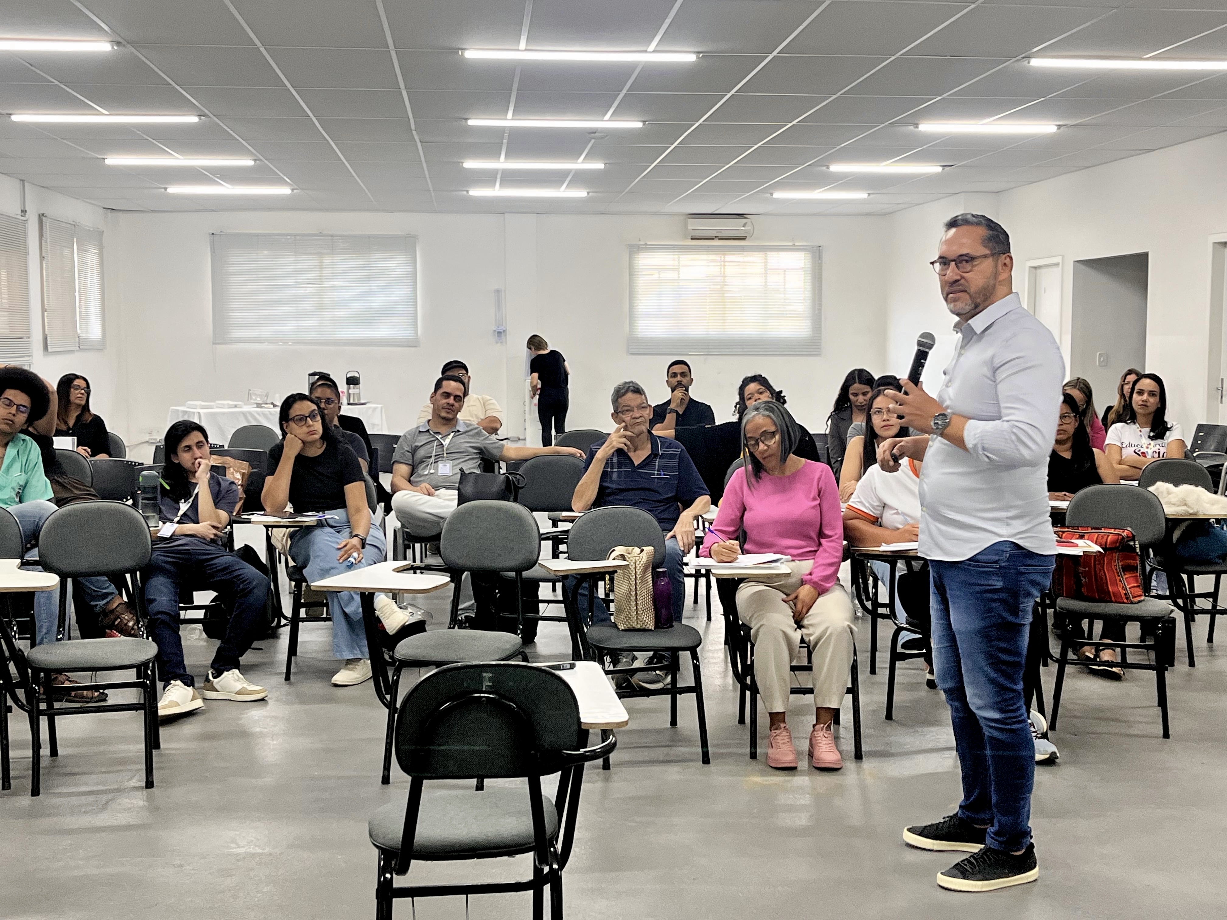 A aula de abertura foi realizada nesta terça-feira (31), no auditório da Fainor, e ministrada pelo secretário de Desenvolvimento Social, Michael Farias, que abordou os aspectos históricos da política de assistência social. Segundo ele, a formação contribui para o alinhamento conceitual e o fortalecimento da atuação dos profissionais que integram a rede. “Esse curso surgiu da necessidade de garantir um nivelamento básico sobre conceitos fundamentais da política de assistência social. Não é possível operar uma política pública tão complexa sem compreender suas bases estruturais. Além disso, ampliamos a participação para outros atores da rede, como conselhos tutelares, saúde e organizações da sociedade civil, porque, sem esse entendimento comum, fica difícil estabelecer conexões e produzir resultados efetivos”, pontuou o secretário.