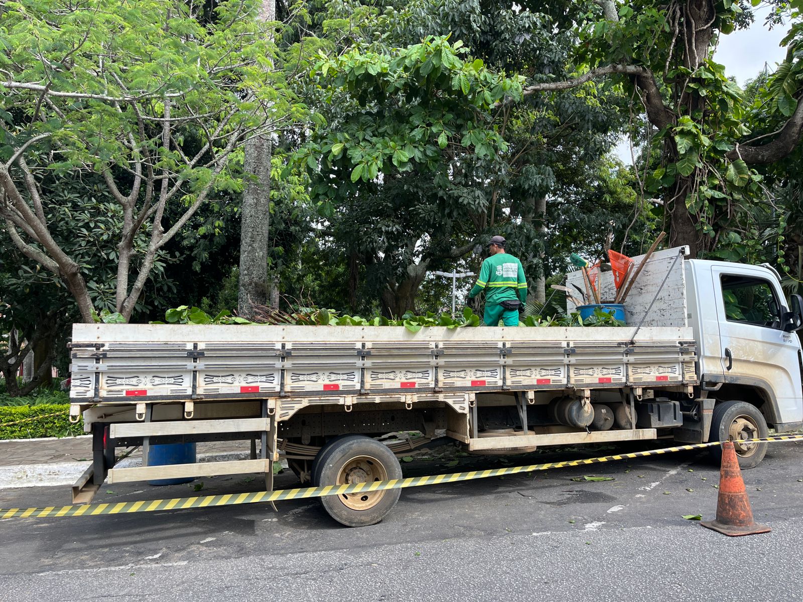 Além dos serviços programados, a equipe de arborização também realizou intervenções emergenciais. Na região da Vila Serrana, uma árvore caída foi retirada. Já na Rua Virgílio Ferraz, foi realizada a poda e limpeza de uma aroeira salsa.Na Praça Tancredo Neves, os profissionais também atuaram na retirada de galhos para reduzir o peso das árvores, prevenindo riscos de queda.