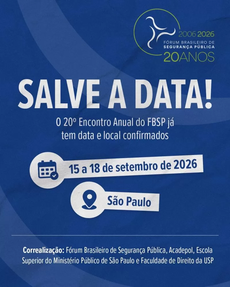 Para saber mais sobre as inscrições para o evento, acompanhe as redes sociais do FBSP, tanto no Instagram como pelo Linkedin.