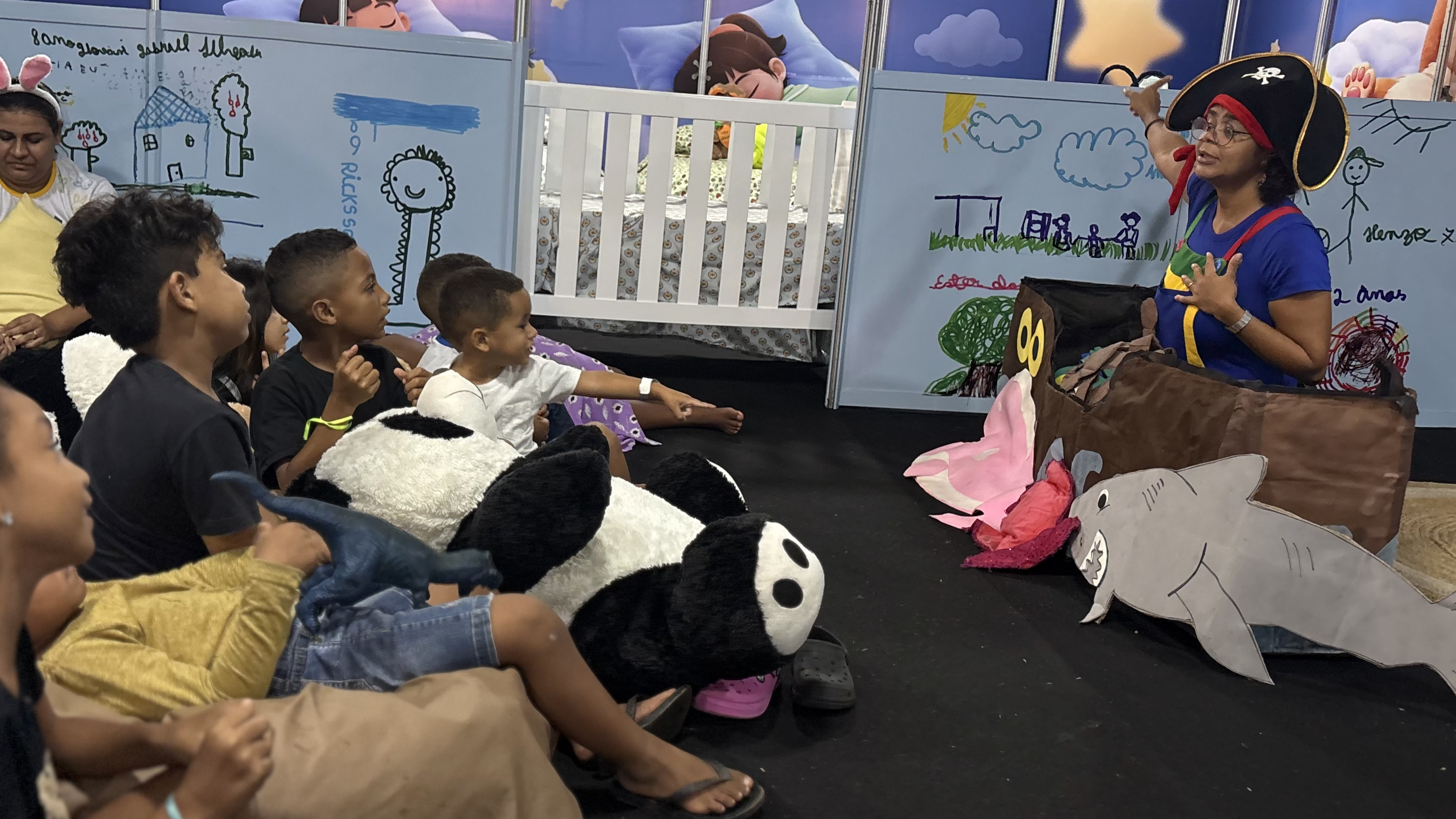 A programação da Estação Acolher inclui, diariamente, um momento especial voltado às crianças, com atividades pensadas para estimular o desenvolvimento de forma leve e divertida. Chamado de “Hora da Surpresa”, esse momento acontece sempre às 20h e traz, a cada dia, uma experiência diferente, como oficinas, cinema, passeios guiados e ações educativas.
