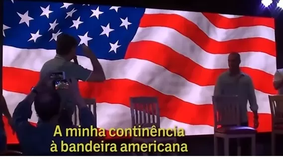 O pai Jair Messias Bolsonaro andou batendo continência para a bandeira dos Estados Unidos, em um vergonhoso, nojento e deplorável puxa-saquismo ao presidente Donald Trump.
