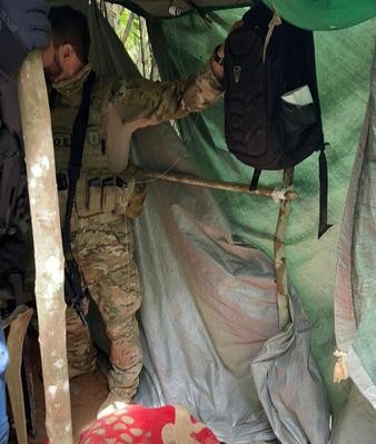 Policiais civis e militares desarticularam três acampamentos durante a Operação Valéria Livre, realizada pelo Departamento de Homicídios e Proteção a Pessoa (DHPP), nesta quinta-feira (26). Nos abrigos improvisados, instalados no local conhecido como Mata do Lavrador, foram encontrados pinos plásticos vazios, mesas, cadeiras, mantimentos e algumas ferramentas.