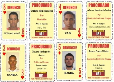Candeias, Dias D´ávila, Mata de São João e Simões Filho, municípios pertencentes a Região Metropolitana de Salvador (RMS), são as áreas de atuação dos quatro procurados pela Justiça baiana inseridos no Baralho do Crime. Os naipes de ‘Copas’ e ‘Ouros’ foram atualizados.
