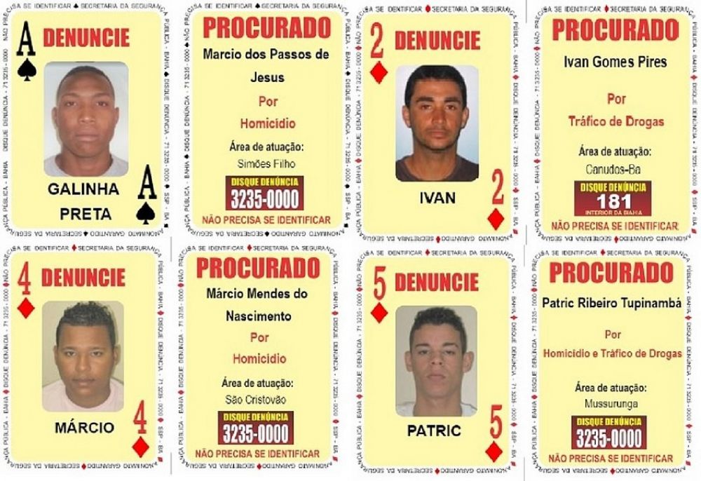 Da região de Mussurunga, em Salvador, Patric Ribeiro Tupinambá, passa a ocupar a vaga de ‘Cinco de Ouros’. Ele tem mandado de prisão pelos crimes de homicídio e tráfico de drogas. Já o homicida Márcio Mendes do Nascimento, de São Cristóvão, em Salvador assume o naipe ‘Quatro de Ouros’.