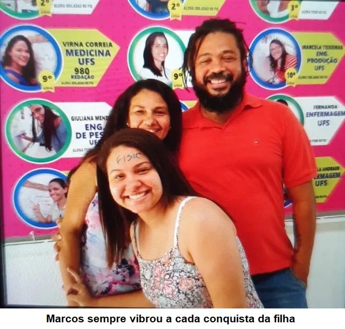 “Existia o Talibã e existia o meu pai. Às vezes, o meu pai chegava aqui dentro e ele era o Talibã. Eu dizia, meu pai eu sou sua filha, esqueça isso, esqueça esse lado seu. Ele desmontava e era o meu pai, Marcos, Teu, painho, meu painho que eu dava a benção todos os dias, porque eu não sabia se ele ia voltar. Toda noite ele dizia, “te amo minha filha” e eu dizia, ama papai? Ele respondia: “eu amo muito”. Um homem preto precisou estudar muito para chegar aonde chegou. Mesmo no seu último dia, meu pai sofreu racismo. Muitas vezes, ele na viatura dava uma carona à gente e escutávamos “olha a qualidade do policial”. Por que o cabelo e a barba incomodavam muito, um homem preto dentro de uma viatura incomoda, uma autoridade preta incomodava muito as pessoas. Mas, meu pai enfrentou isso a vida inteira com um sorriso no rosto. Ele nunca entrou em casa reclamando o que as pessoas falavam dele, ele não absolvia isso, sempre deu a volta por cima de cabeça erguida”, lamenta a filha.