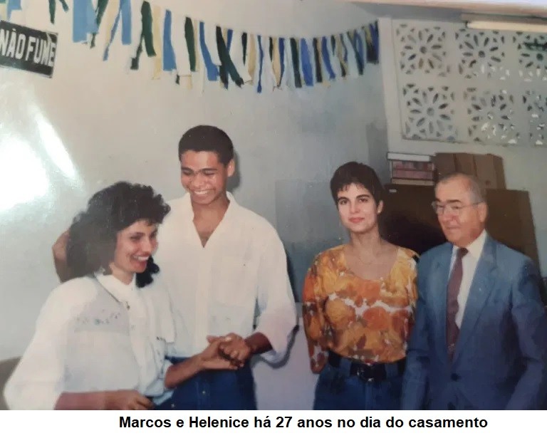 Por lá, conheceu a sua esposa e no espaço de 1 ano, namorou, noivou e casou com Helenice de Oliveira, que também era empacotadora no supermercado. “Depois que a gente casou, compramos o terreno e começamos a construir essa casa. Para terminar, um de nós tinha que sair para pegar a rescisão e terminar a casa. Depois ele foi promovido a auxiliar de frente de loja e eu trabalhava como diarista para sustentar a casa. Quando Milena chegou, ele me incentivava a fazer alguma coisa que eu pudesse ficar em casa, foi aí que fui fazer o curso de cabeleireira”, conta Helenice.