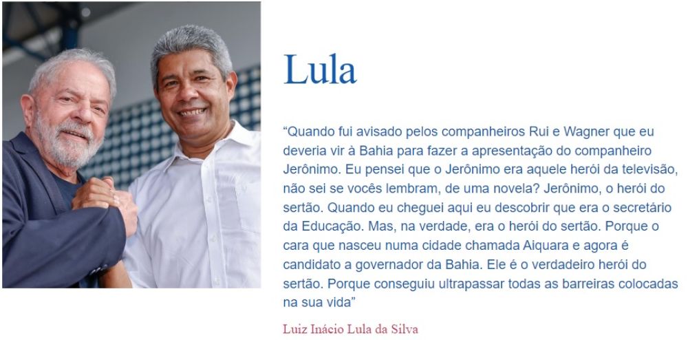 Com Wagner, Rui, o apoio de Lula e dos partidos aliados, um novo momento foi inaugurado em nosso estado.