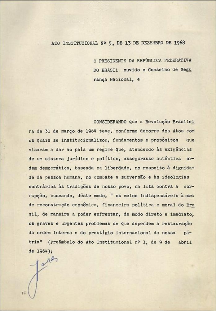 Hoje vejo esse ladainha da Esquerda em querer julgar e condenar o policial militar e Deputado Federal/RJ, Daniel Silveira, por defender o AI-5. Ora, senhores vocês quê mantiveram o ATO INSTITUCIONAL N° 5, e a Lei de Segurança Nacional, vejam que na Presidência da República FHC, LULA E DILMA, nunca revogaram os efeitos do ATO INSTITUCIONAL N° 5.