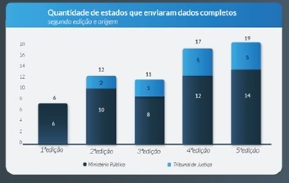Nesta última edição, o percentual de homicídios esclarecidos no país foi de 37%, contra 44% do ano anterior. Rondônia foi o estado que mais esclareceu homicídios ocorridos em 2019, com percentual de 90% de esclarecimento, seguido pelo Mato Grosso do Sul, com 86%, e Santa Catarina, com 78%. Na quarta edição, Mato Grosso do Sul já havia se destacado, com um percentual de 89%.