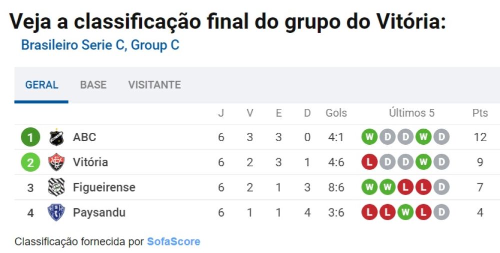 A outra equipe da chave que também subiu é o ABC, que terminou com 12 pontos após as seis rodadas. Figueirense e Paysandu jogarão novamente a terceira divisão nacional em 2023.