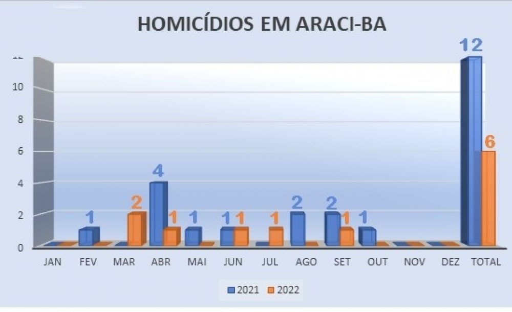 Em 2022, Araci-BA registrou seis homicídios, sendo todos eles com o uso de arma de fogo.