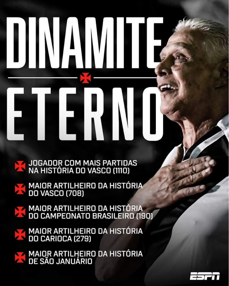 "Meu ídolo desde criança. O cara que me fez viver as primeiras emoções com meu Vascão. Um ser humano generoso e amigo. Vai em paz, Dinamite. Obrigado por todos os momentos de alegria que você me proporcionou. Meus sentimentos aos familiares, amigos e a legião de fãs desse craque!", disse o prefeito do Rio.