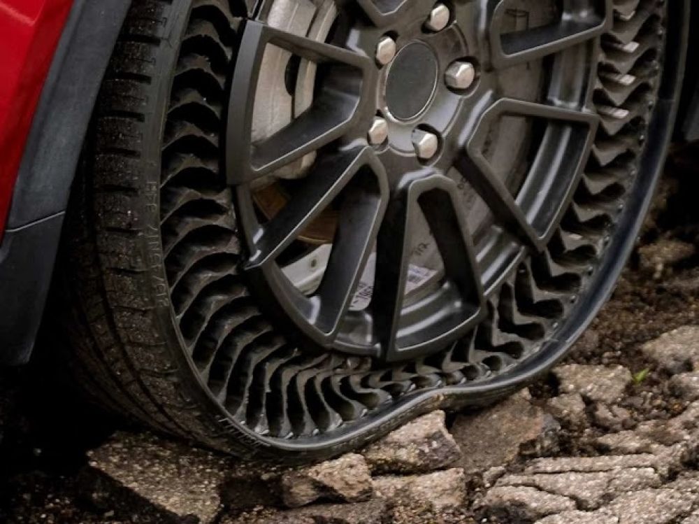O desenvolvimento de pneus Michelin sem ar e resistentes a perfurações começou em 2017, há cinco anos, como resultado de uma parceria com a empresa americana General Motors.