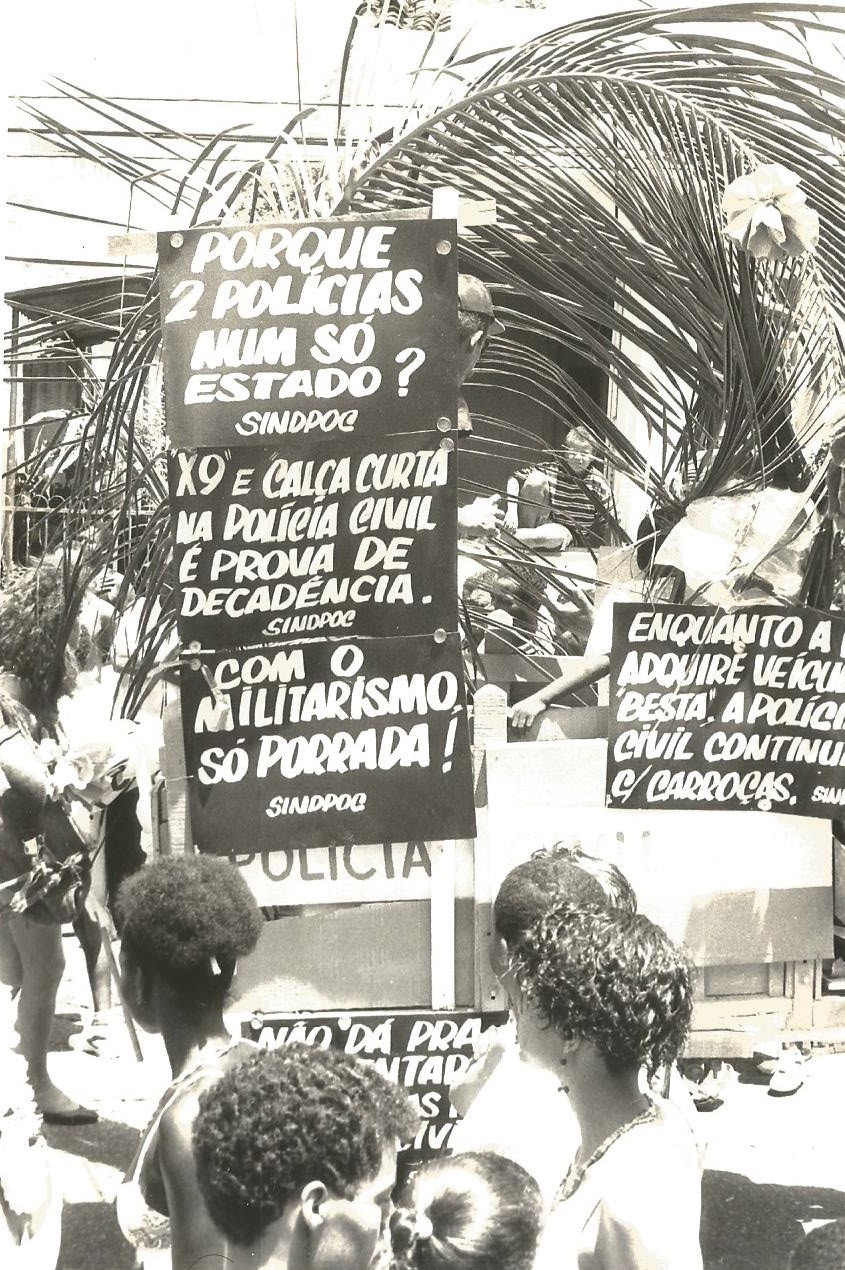 Éramos tão contundentes e indesejados, que a barra só aliviava da saída do cortejo no final de linha do Garcia até as proximidades da entrada no Circuito do Carnaval no Campo Grande; governadores e prefeitos da situação, obrigavam os policiais civis a uma tentativa de confronto com os policiais militares, o que não acontecia porque os colegas policiais militares faziam de conta que cumpriam as ordens superiores, mas na realidade, ainda que fardados, sabiam que nossas iniciativas eram em prol de todos, na luta por melhores salários e condições de trabalho.