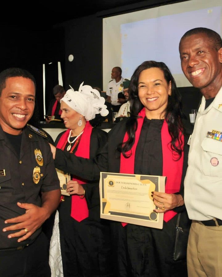 A concessão do título foi aprovada pelo senado acadêmico das instituições. Além do Capitão Tadeu que recebeu o título pelo trabalho de Educação Jurídica para a Cidadania que desenvolve, outras personalidades também foram agraciadas com o título de “Doutor Honoris Causa”, a exemplo da Delegada de Polícia Civil e ex-Titular da Delegacia de Proteção ao Turismo (DELTUR), Maritta Silva Souza.