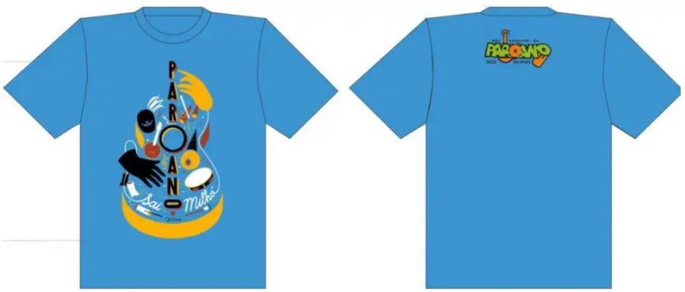 O Paroano Sai Milhó, como acontece todos os anos, lança uma camisa para os foliões que desejam acompanha-los nas apresentações pela cidade durante o Carnaval. E em 2023 a arte escolhida foi de Davi Caramelo, que traz em sua criação diferentes elementos que caracterizam o Paroano – os instrumentos, as fantasias, a canção – que, “apesar de aparentemente dispersos, formam juntos uma figura maior: o palhaço que solta a voz na avenida e traz consigo o Carnaval dentro da sua ciranda, dentro de si”, descreve o artista visual, designer e ilustrador baiano @davicaramelo.