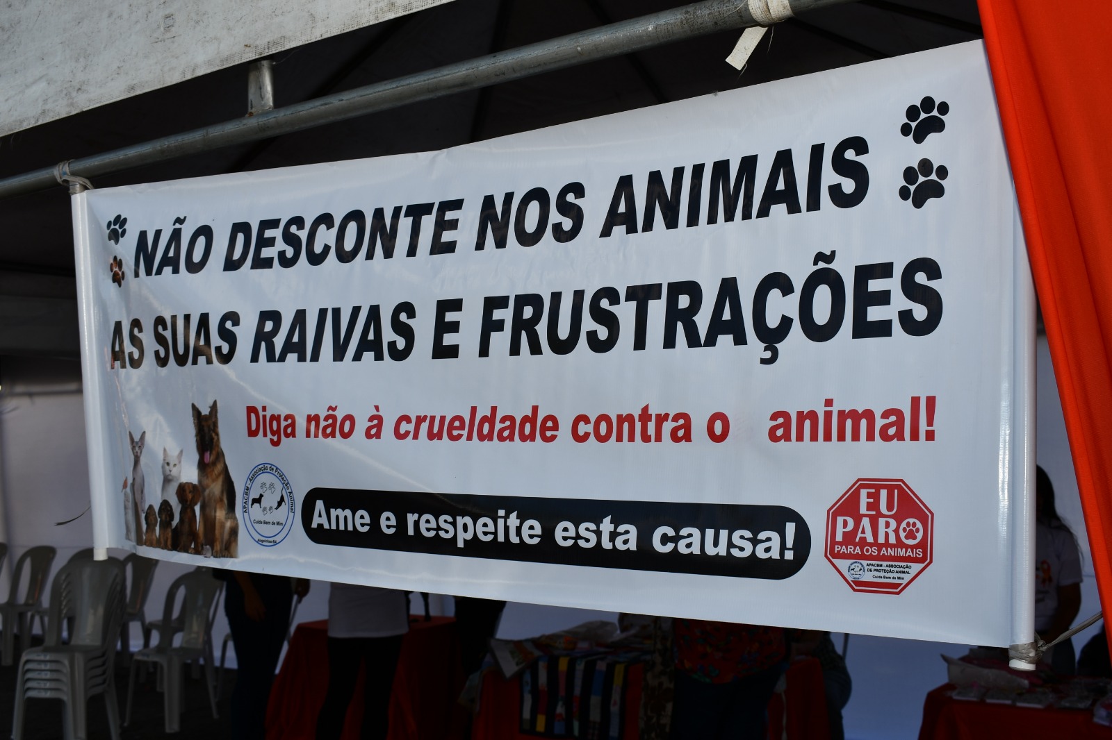 Nos dias 14 e 15,o Abril Laranja seguiu com a oferta de vários serviços e orientações ao público, comstandsmontados no estacionamento da Prefeitura. Entre eles, havia o que disponibilizava para adoção cães e gatos abrigados pelos Anjos de Quatro Patas, fundação sem fins lucrativos que abriga e trata animais abandonados e em situação de vulnerabilidade, que recebe o apoio da prefeitura. Foram expostos 20 cachorros e 30 gatos, todos castrados e vacinados. “Os animais foram oferecidos para uma adoção responsável e o tutor deve ter a consciência do que está fazendo. Eles preencheram uma ficha de cadastro e depois de orientados, puderam levar os animais pra casa,” explica Iane Bulhões, engenheira ambiental da SEDEA.