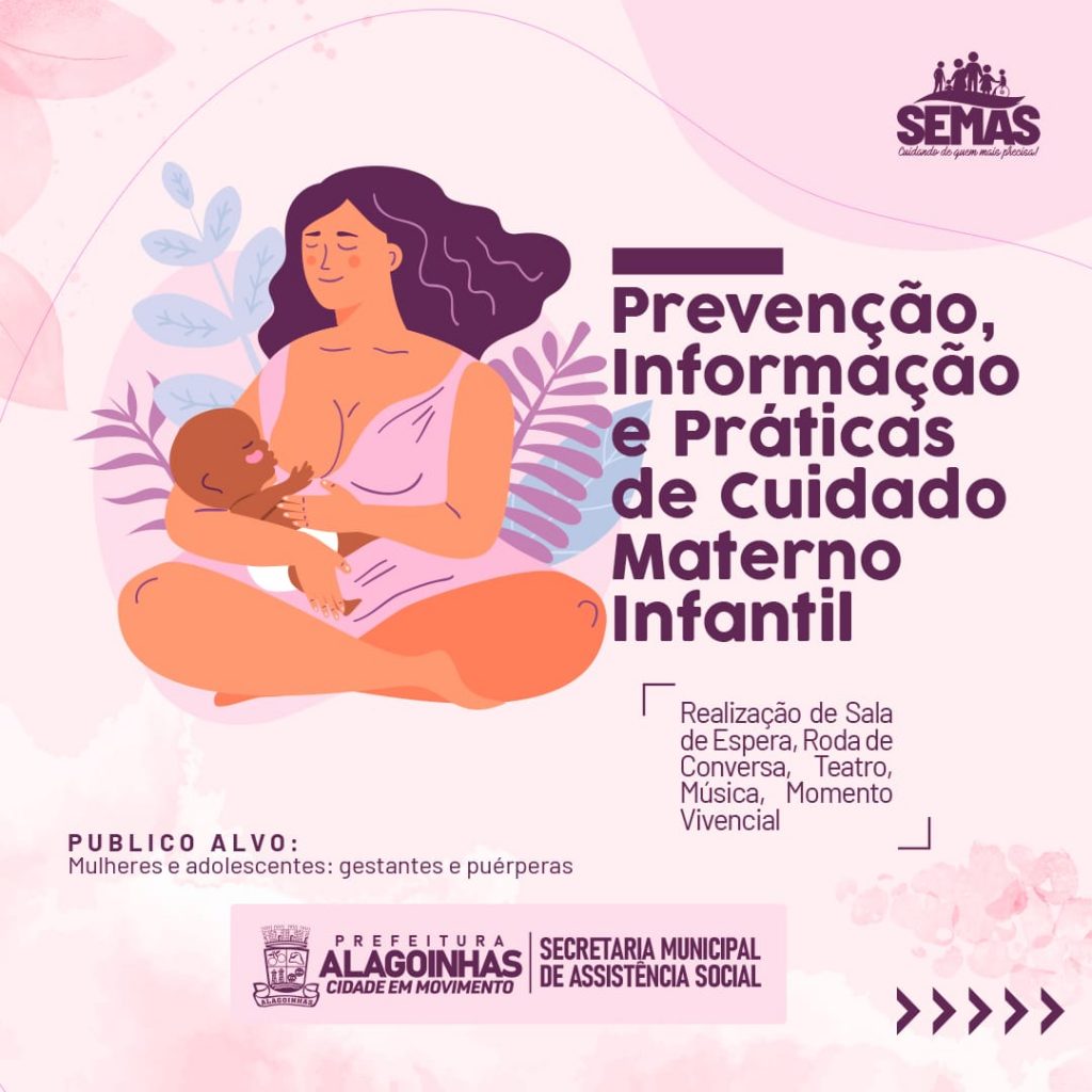 Durante o mês de maio, a Secretaria Municipal de Assistência Social, por meio daCoordenação de Políticas para as Mulheres e Coordenação de Políticas de Proteção da Criança e Adolescente, realiza a ação: Prevenção, Informação e Práticas de Cuidado Materno Infantil em unidades do SUAS e do SUS. A iniciativa tem como público-alvo mulheres e adolescentes gestantes e puérperas.