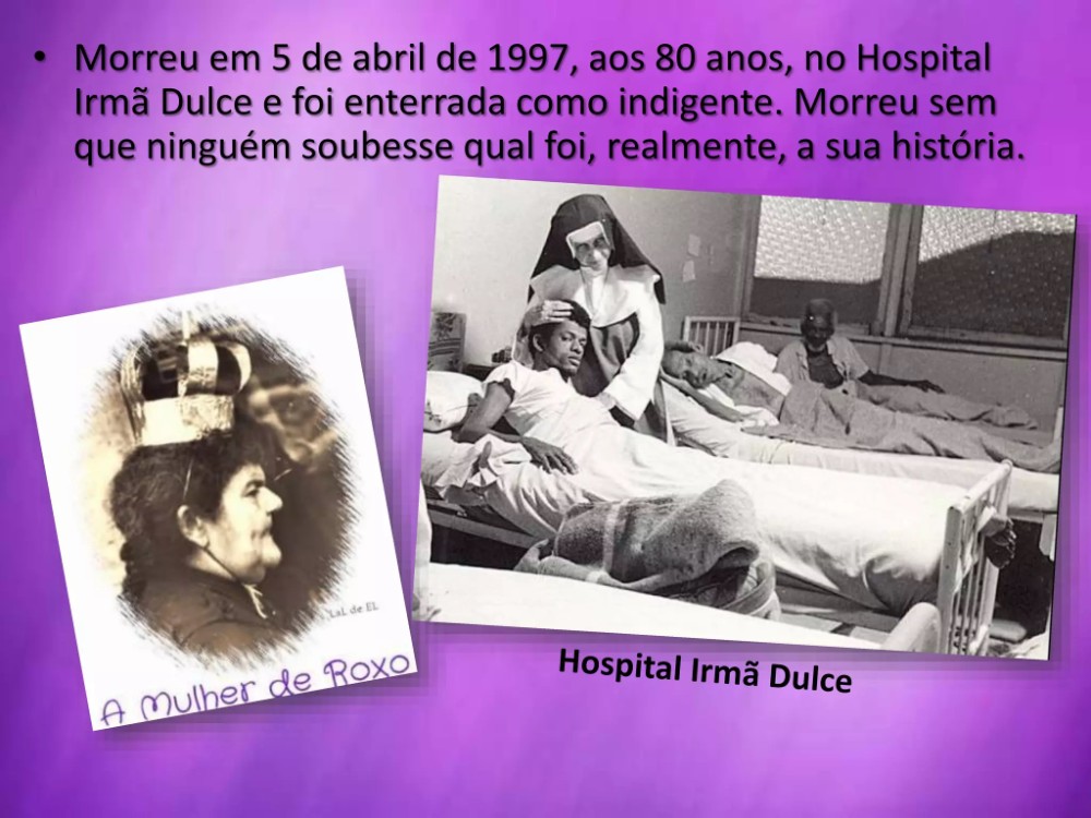 Infelizmente, ao que tudo indica, a verdade jamais será descoberta. Afinal, a mulher de roxo foi enterrada em 5 de abril de 1997, quando faleceu, ao que especula-se aos 80 anos, sendo sepultada como indigente.