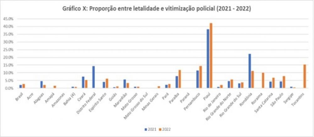 É evidente que o confronto faz parte da atuação policial e o uso da força é constituinte da profissão, contudo, a desproporcionalidade do uso da força está suficientemente evidente em ambos os indicadores, assim como a grande heterogeneidade entre as unidades da federação, que é historicamente consolidada e sinaliza concentração territorial e institucional da letalidade policial no Brasil. Algumas polícias são muito mais violentas que outras. Amapá, Bahia, Goiás, Rio de Janeiro e Sergipe seguem sendo as polícias que mais fazem uso abusivo da força no país.