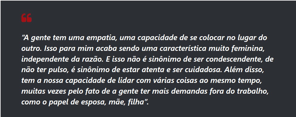 Heloisa sabe também que para transformar esse cenário, é preciso ter mais mulheres em posições de comando. E ela não caminha sozinha. Com a sua chegada à chefia, no início de 2021, outras mulheres ascenderam junto.