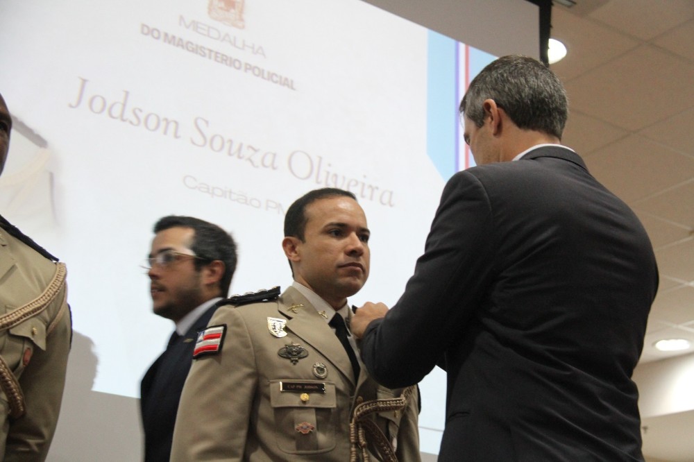 Cento e dezesseis policiais (116) e autoridades foram agraciados com a Medalha do Magistério Policial da Secretaria da Segurança Pública, entregue na tarde desta segunda-feira (11), em solenidade no auditório do Ministério Público Estadual, no Centro Administrativo da Bahia (CAB).